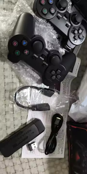 ✔️ Controles Inalámbricos: Dos mandos de 2.4 GHz para disfrutar de tus juegos favoritos desde el sofá, sin cables molestos.